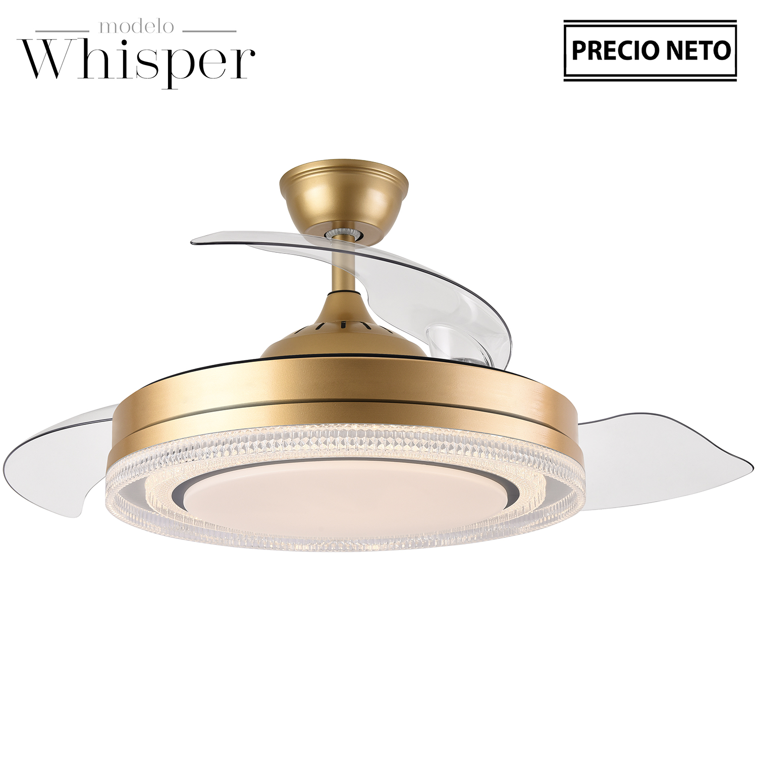 VENTILADOR TECHO C/LUZ 3 ASPAS RETRÁCTILES GRIS WHISPER