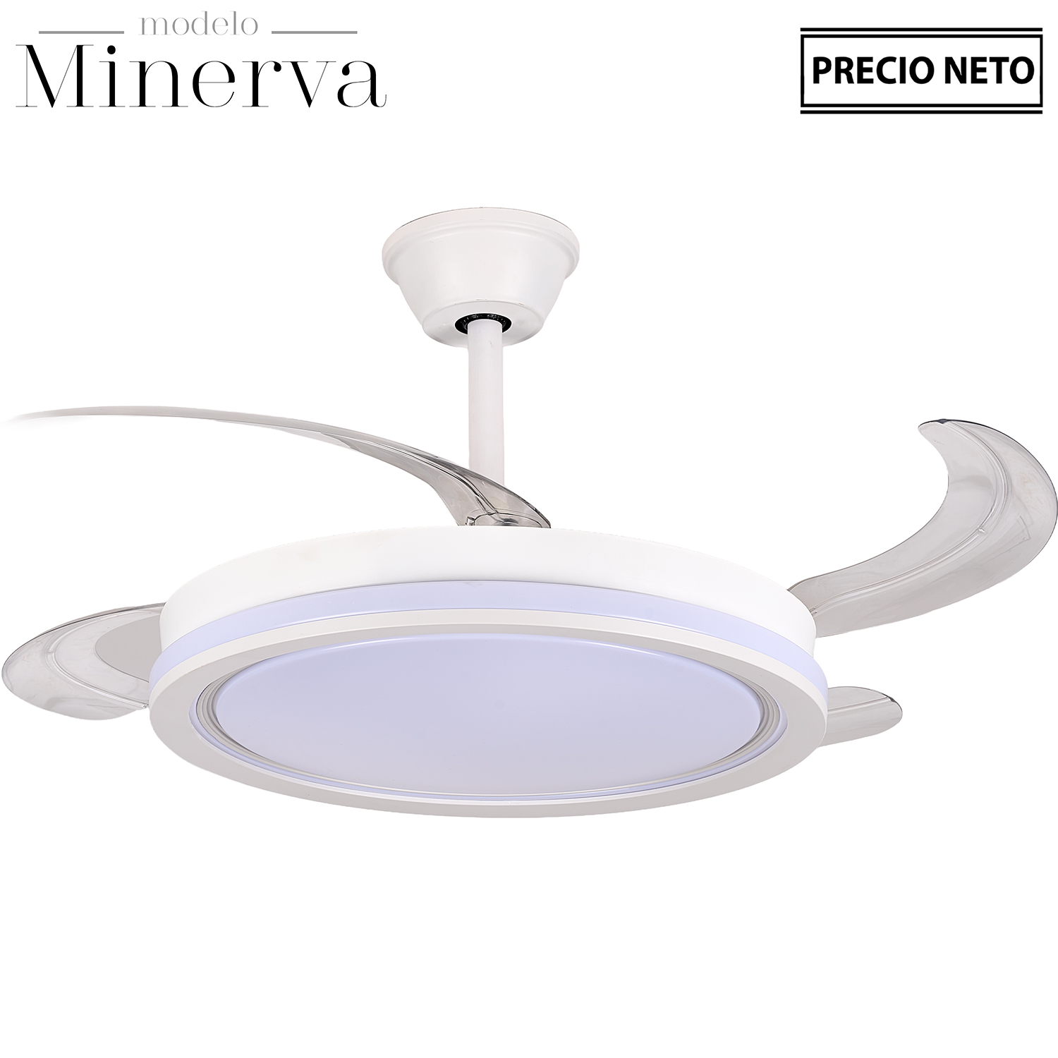 VENTILADOR TECHO C/LUZ 4 ASPAS RETRÁCTILES BLANCO CAELUS