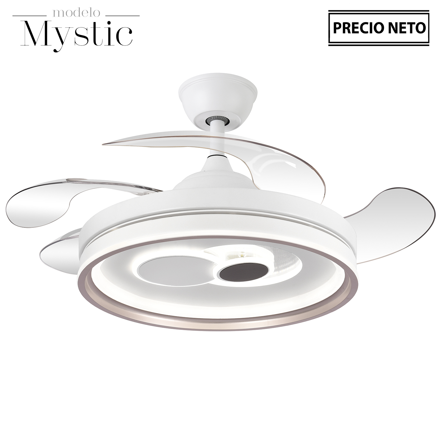VENTILADOR TECHO C/LUZ 4 ASPAS RETRÁCTILES BLANCO CELESTIAL